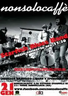 Un weekend di ottima musica si preannuncia al Nonsolocaffè di Torre Annunziata, in corso Vittorio Emanuele III. Ad esibirsi, venerdì 21 gennaio alle ore 22.30, saranno gli "Starfish Blues Band", gruppo nato nel 2006 da un´idea del bassista Marcello Aquino, il quale recluta alla batteria Salvatore Di Casola e alla chitarra solista Gianluigi Vitiello, a cui si aggiunge successivamente alla voce Marco Sorrentino (già batterista "I Pennelli di Vermeer"). Un quartetto blues che ci accompagnerà in un viaggio lungo il Delta del Mississippi, alla ricerca dei luoghi dove il blues è nato e vive come esperienza quotidiana. Musica che riporterà le nostri menti visioni di quella "popolazione nera" del profondo Sud Statunitense che ha creato il genere e nello stesso ritrova un fortissimo senso di identità. Un senso di appartenenza e un´autenticità di un "America minore".