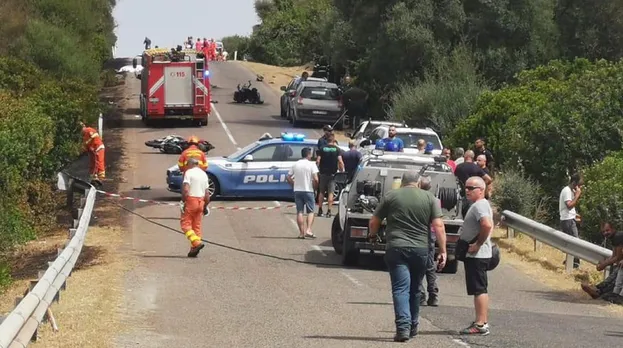 Nel devastante impatto con l’auto, le moto hanno preso fuoco e le fiamme hanno subito interessato la vicina vegetazione che, anche in ragione del periodo caldo che stiamo attraversando, hanno originato un improvviso e gigantesco rogo che, oltre alle squadre di terra, ha richiesto anche l’intervento di Canadair decollati dalla base di Olbia ed elicotteri.