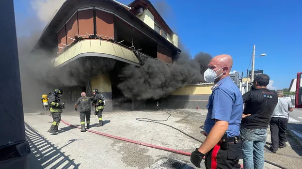I Vigili del fuoco stanno domando l’incendio, le tre persone soccorse sono intossicate ma al momento non ci dovrebbero essere feriti.
