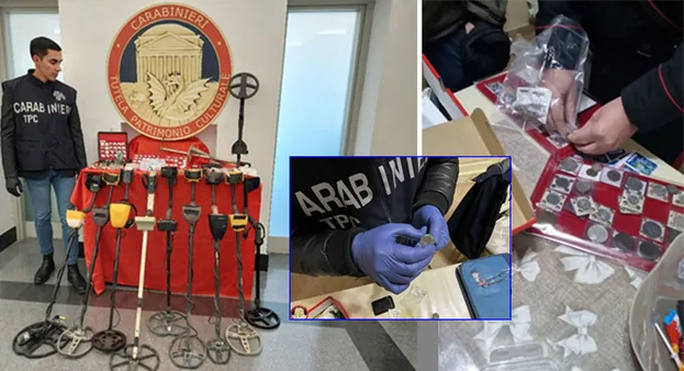 Nel corso delle operazioni di perquisizione, sono stati sequestrati 819 reperti archeologici apuli, magnogreci e romani, provenienti maggiormente da Campania e Puglia, risalenti al periodo VII secolo a.C. e V d.C., tra cui 675 monete archeologiche, prevalentemente di bronzo, alcune in argento e in oro, ma anche 144 manufatti archeologici in bronzo, piombo e ceramici, nonché 11 sofisticati metal-detector e diversi strumenti per il sondaggio del terreno.