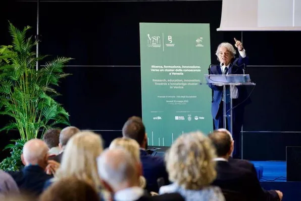 "Oggi Venezia si propone come un cluster della conoscenza, una costellazione di imprese, istituzioni e saperi interconnessi. Questo cluster, in fondo, rappresenta la sublimazione di ciò che Venezia è sempre stata: un faro di civiltà, un crocevia di intelligenze. Oggi può tornare ad esserlo, declinando la modernità attraverso università, laboratori, brevetti, cultura e scienza. Una città che non si arrende alla monocultura turistica, ma che si reinventa come capitale globale del sapere sostenibile, in grado di ispirare il mondo con il proprio esempio". Così Renato Brunetta, presidente della Fondazione Venezia Capitale Mondiale della Sostenibilità / Venice Sustainability Foundation (Vsf) in apertura al primo convegno della Biennale della Sostenibilità 2025, intitolato 'Ricerca, Formazione, Innovazione. Verso un cluster della conoscenza a Venezia', tenutosi all’Arsenale di Venezia.