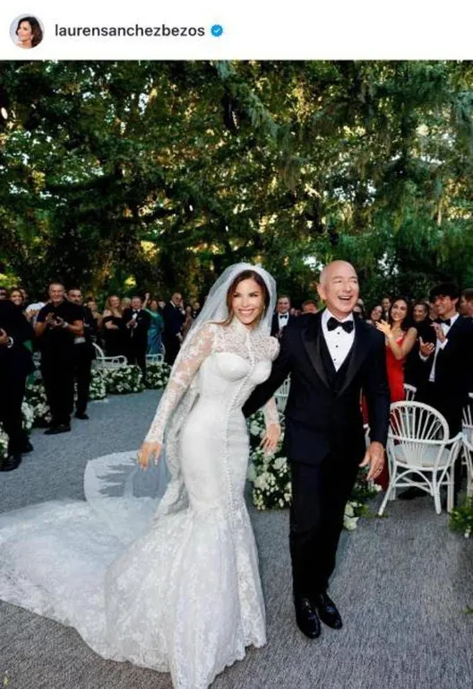 Lauren Sánchez aggiunge "Bezos" al suo cognome, condividendo una foto di sé in un meraviglioso abito da sposa bianco e aggiornando il suo nome sul profilo Instagram. La giornalista, che questa sera ha celebrato le nozze con il fondatore di Amazon, Jeff Bezos, sull'isola di San Giorgio a Venezia, ha mostrato per la prima volta l'abito nuziale sul suo profilo Instagram cambiando anche il nome visualizzato in "Lauren Sanchez Bezos" e aggiungendo la data "27/6/2025" e un cuoricino.