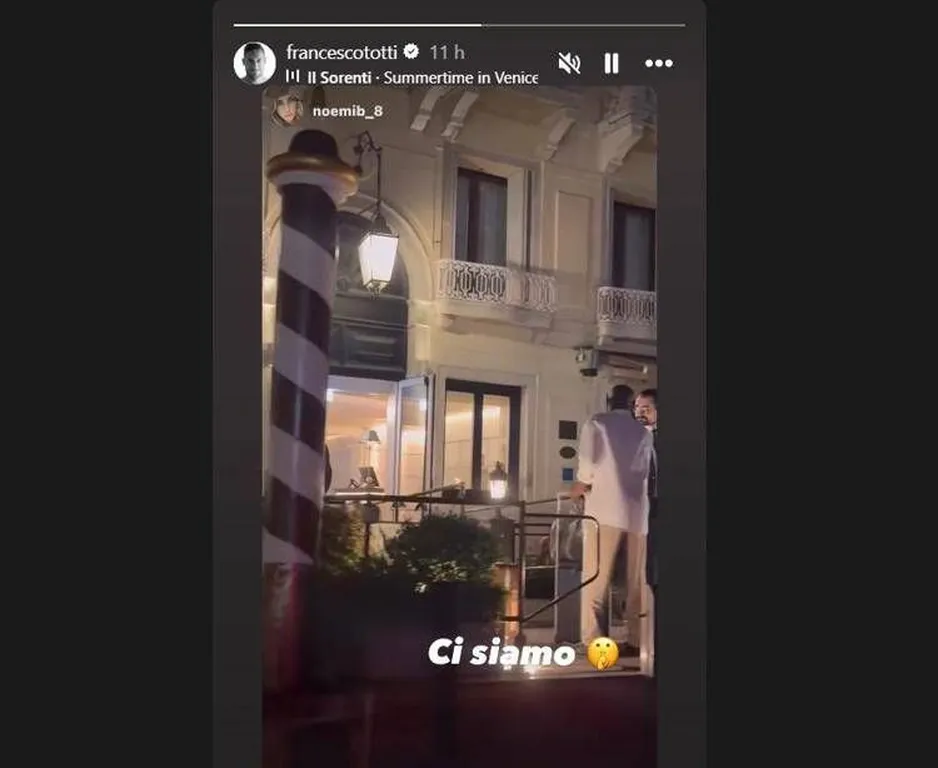 Francesco Totti e la compagna Noemi Bocchi sono a Venezia. Ieri, nel giorno della festa da ballo di Jeff Bezos e Lauren Sanchez, Noemi ha pubblicato una storia su Instagram, ricondivisa da Totti con la scritta "Ci siamo". Coincidenza o invitati alla festa? Il 'Pupone', però, non risulterebbe tra gli invitati dei coniugi Bezos-Sanchez.