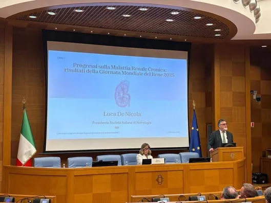 Entro fine anno, "dovrebbe essere legge l'offerta di uno screening nei soggetti a rischio di malattia renale cronica da parte delle medicine generali - annuncia De Nicola - Solo il 10% dei pazienti sa di avere una malattia renale, e quindi va dal nefrologo. La patologia, nelle fasi iniziali, non dà sintomi - puntualizza - perché i reni riescono a compensare il danno: il paziente con una malattia renale in cui si è perso anche il 50% della massa funzionante può avere solamente un senso di stanchezza, una pressione più alta, tutti segni aspecifici. Con Giorgio Mulè, vicepresidente della Camera, Anna Rita Patriarca e Ugo Cappellacci - informa - abbiamo portato avanti l'idea di fare uno screening in tutti i pazienti con età tra i 55 e i 75 anni che abbiano un fattore di rischio come ipertensione, diabete, obesità, cardiopatie".
