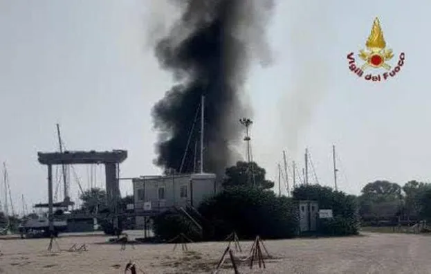 Incendio in un rimessaggio di barche a Ostia, alta colonna di fumo sul litorale romano