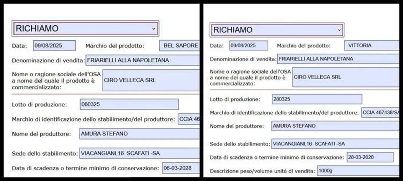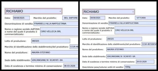 Il ministero della Salute ha richiamato 4 lotti di friarielli di due marchi, tutti provenienti dallo stesso stabilimento, per ''sospetto rischio contaminazione botulino''. I due marchi sono Bel Sapore e Vittoria, prodotti tutti a Scafati nel Salernitano. Il dicastero nel documento pubblicato chiede, inoltre, il ''ritiro prodotto eventualmente in giacenza''.
