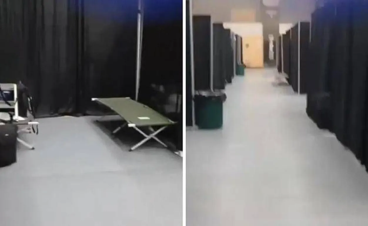 Come dimostrano alcuni video postati sui social, l'Alaska Airlines Center è stato trasformato in una struttura ricettiva temporanea, con letti da campeggio e divisori. “Condizioni spartane”, si sente in uno dei filmati.