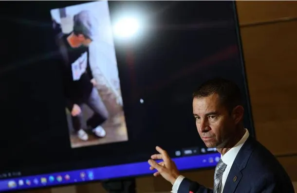 Nel filmato, il sospetto appare prima nell'angolo in alto a sinistra del tetto, quindi si sposta dietro una parte sopraelevata dell'edificio e raggiunge l'angolo opposto, per poi calarsi da alcuni metri sul prato, lasciando impronte di mani, possibili tracce di dna, e di scarpa. Gli investigatori ritengono che indossasse scarpe da ginnastica, ha precisato il commissario del Dps, Beau Mason, in una conferenza stampa. Dopo essere sceso, il sospetto attraversa un prato vicino a un parcheggio e si rifugia nella zona boschiva dove è stata rinvenuta l'arma.