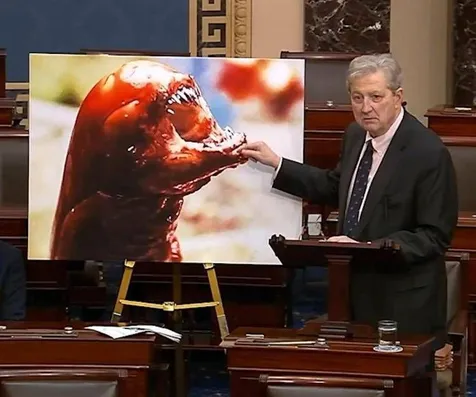 "Se mangiate questi gamberi, diventate come Alien". John Kennedy, senatore repubblicano, ha scelto gli effetti speciali per far scattare l'allarme sull'importazione di gamberi pericolosi e sul loro eventuale consumo. "Questa è la foto dell'alieno, nel film Alien. Potreste diventare così se mangiate gamberi surgelati mandati negli Stati Uniti da altri paesi. Alla fine di agosto, l'FDA ha scoperto che gamberi crudi surgelati arrivati inviati dall'Indonesia venivano venduti" in una lunga serie di stati del Sud.