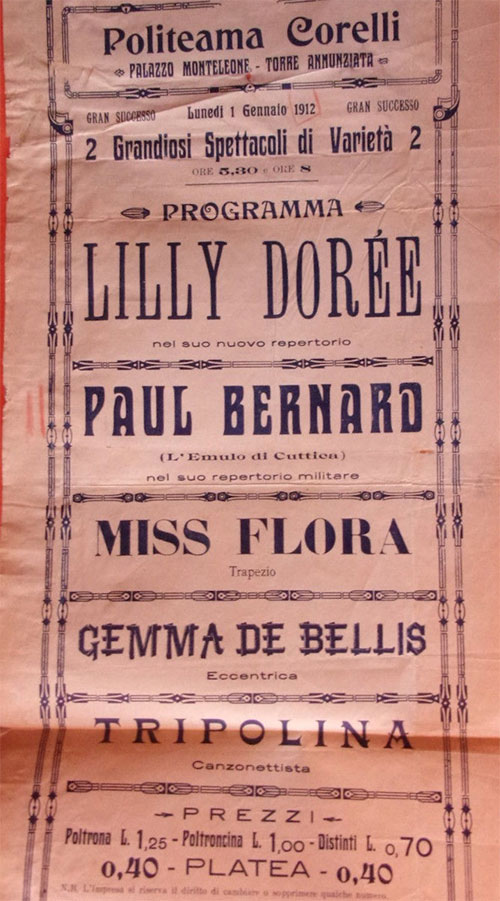 Già perché il cinema Politeama venne inaugurato nel 1908, anche se allora si chiamava Politeama-Corelli di proprietà appunto della famiglia dei pupari. Infatti sin dal 1880 vi era un teatro di pupi appartenente a Nicola Corelli, in via della Fortuna. Col tempo gli spettacoli dei pupi, 3 o 4 alla settimana, attiravano sempre più pubblico a tal punto che Corelli dovette dar vita a veri e propri tour e portare in giro per il Mezzogiorno i suoi pupi e le storie delle quali essi erano protagonisti.
