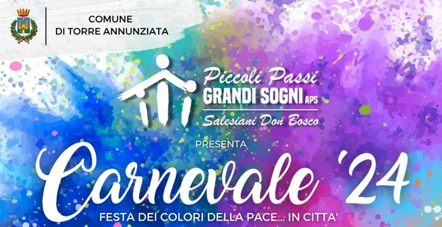Torna anche quest’anno, il prossimo 8 febbraio a partire dalle 9,30, la festa dei colori della Pace: l’appuntamento con il Carnevale delle scuole, organizzato dall’associazione “Piccoli passi grandi sogni aps” e patrocinato dal Comune di Torre Annunziata, che vedrà protagonisti i giovanissimi alunni delle terze, quarte e quinte elementari degli istituti comprensivi oplontini. Le bambine e i bambini, accompagnati dai loro insegnanti e genitori, si incontreranno nella Villa comunale di via Marconi per una giornata di festa, musica e animazione.