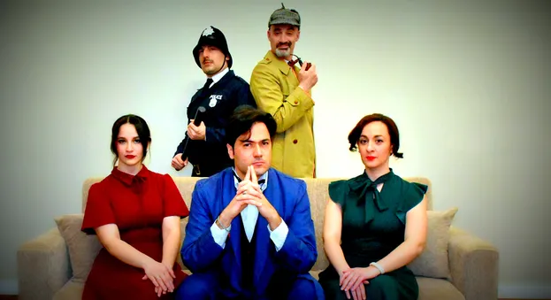 Pasquale Nastri, Michele Maria Gallo, Alessandra D’Ambrosio, Rossana Carotenuto e Domenico Cristiano, ci condurranno in un’epoca indefinita, in una lussuosa villa nella tranquilla campagna inglese, dove una donna è stata assassinata, senza lasciare traccia di sé. Questa l’ambientazione di una messinscena tra il noir, la commedia ed il teatro dell’assurdo, i cui protagonisti si muovono come pedine di una partita a scacchi nella quale ognuno fa la propria mossa, più o meno (…o anche per niente!) astuta, ritrovandosi sovente in situazioni tanto comiche quanto surreali. Il sagace dottor Rupert Short, che diventerà poi il principale sospettato per l’omicidio della sua bellissima moglie, denuncia la scomparsa della consorte e pretende che a seguire le indagini sia il miglior detective di Scotland Yard. Sarà l’infallibile e beffardo ispettore Drake, l’uomo incaricato di seguire le indagini, affiancato dal peggiore aiutante che un detective possa desiderare: il volenteroso e ottuso Sergente Plod.