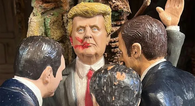 Ebbene la creatività dei napoletani non si è fatta attendere. Una bottega di San Gregorio Armeno, conosciuta in tutto il mondo come la “Via dei Presepi”, ha realizzato una statuetta di Donald Trump con il viso e la tempia macchiati di sangue.