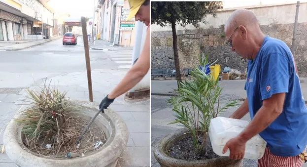 Ma spostiamoci a via Sepolcri, la strada che conduce agli scavi di Oplonti. Qui Andrea Gallo, dipendente comunale prossimo alla pensione, Giovanni Angrisano, giardiniere del Comune in pensione, e il sempre presente Alessandro Raio (instancabile volontario), si sono presi cura delle fioriere lungo la strada. Eliminati rami e fogliami secchi, hanno ripiantato arbusti di oleandri. Certo non si può pretendere tutto dai volontari, anche se il loro contributo non viene mai meno. Occorrerebbe pertanto stipulare un appalto con una ditta per la gestione del verde pubblico, non solo quando c’è da potare gli alberi, ma anche per la manutenzione ordinaria di giardini, aiuole e fioriere.