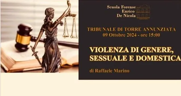 La violenza sessuale e domestica è un dramma di scottante attualità che è presente sempre più nella nostra società. Questo argomento verrà affrontato e approfondito, mercoledì 9 ottobre, alle ore 15,00, presso il Tribunale di Torre Annunziata, dal dottor Raffaele Marino, già procuratore aggiunto presso la Procura di Torre Annunziata.