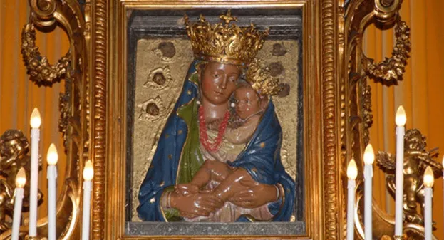 Nel 1354, il 5 agosto, alcuni pescatori di Torre Annunziata, nei pressi dello Scoglio di Rovigliano, al confine con Castellammare di Stabia, recuperarono dal mare una cassa impigliata nelle reti, al cui interno ritrovarono un busto di terracotta, che rappresentava una Madonna dalla pelle scura, recante tra le braccia il Cristo bambino. Sul busto non vi erano iscrizioni di nessun tipo, quindi non era possibile ricondurlo con precisione ad una Vergine.