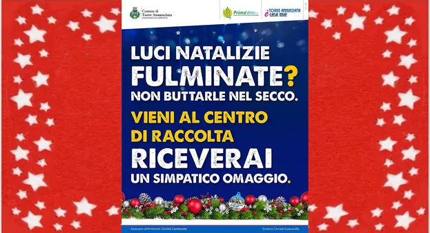La Prima Vera, società che gestisce la raccolta dei rifiuti a Torre Annunziata, ha lanciato l’iniziativa del recupero delle luci natalizie fulminate.