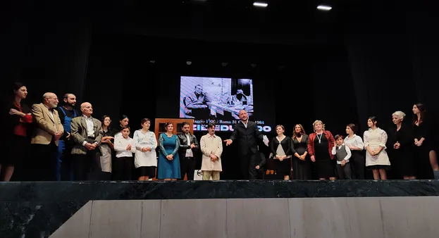 La compagnia di Torre Annunziata “’A Fenesta da Torre” ha trasformato queste esitazioni e perplessità in convinzioni e certezze costruendo una sorta di “Serata d’onore” dedicata all’immenso drammaturgo partenopeo: “I Guardiani del Teatro di Eduardo”. L’occasione è stata suggerita dal quarantennale della sua scomparsa, ma lo spettacolo, nato da un’idea di Vincenzo Genovese e Giovanna Contento, così come è stato realizzato, può tranquillamente essere considerato un puzzle artistico senza riferimenti temporali.