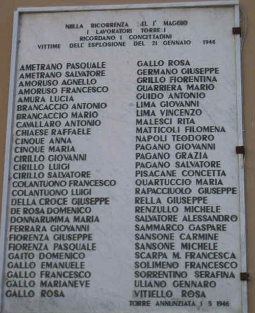 Il 21 gennaio 1946, trenta vagoni ferroviari carichi di munizioni, principalmente bombe di aeroplano ad alto potenziale, stoccati all’interno del porto oplontino, deflagrarono radendo al suolo tutta l’area circostante. Persero la vita 54 persone e ci furono oltre 400 feriti.