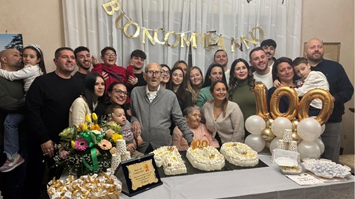 Accanto a lui, da ben 79 anni, la moglie Anna Colomba Cuomo, compagna di una vita condivisa giorno dopo giorno. Dalla loro unione sono nati nove figli, ai quali si sono aggiunti nel tempo sedici nipoti e sette pronipoti, una grande famiglia che oggi rappresenta il segno più concreto della sua lunga storia personale.