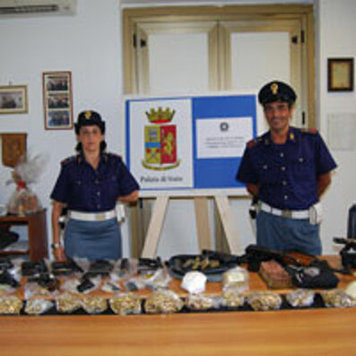 Maxi sequestro di armi a Boscoreale, allinterno del campetto polivalente Villa Regina. Una Santabarbara alla luce del sole. Gli agenti del commissariato di Torre Annunziata, diretti dal primo dirigente Attilio Nappi e dal commissario Donato Pepe, hanno ritrovato un vero arsenale racchiuso in buste nere, simili a quelle per contenere limmondizia. Il risultato delloperazione ha rappresentato una dura spallata agli interessi dei clan della zona al confine tra Boscoreale e Torre Annunziata. Il bilancio parla del sequestro di un kalashnikov, completo di 178 colpi, nascosto in un borsone, una pistola mitragliatrice calibro 9, nascosta in uno zaino, un silenziatore e oltre trecento proiettili calibro 9 Luger. Inoltre gli agenti hanno recuperato tra le sterpaglie del Piano Napoli dieci pistole, con un totale di 2.500 proiettili di vario calibro, dal 7,65 al 45, passando per il calibro 9, il 40 e il 357 Magnum. Ancora, due pistole Berretta racchiuse in una valigetta e coperte da cellophane. Insieme allarsenale, gli agenti hanno ritrovato anche circa mezzo chilo di cocaina. Gli investigatori stanno approfondendo le indagini per risalire ai responsabili e proprio in queste ore potrebbero scattare le prime perquisizioni nei bunker della camorra.