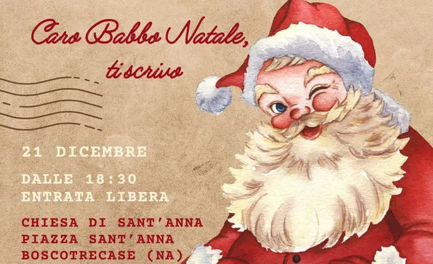 Dalle 18,30 di oggi, sabato 21 dicembre, presso la chiesa di Sant’Anna di Boscotrecase, nell'ambito del Villaggio di Babbo Natale realizzato da don Pasquale, sarà presente una scatola di “desideri gentili” che i cittadini potranno trascrivere su un foglio e inviarli a Babbo Natale. Una scatola analoga sarà presente anche nel bio-bar Libertà di Torre Annunziata.