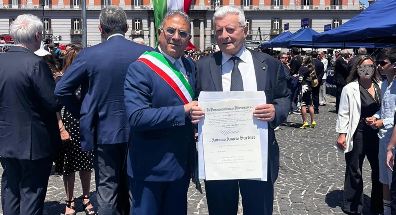 In occasione della cerimonia ufficiale per la Festa della Repubblica svoltasi a Napoli, insieme al Prefetto di Napoli Michele di Bari, il sindaco di Boscoreale Pasquale Di Lauro ha consegnato l'onorificenza di Ufficiale dell’Ordine al Merito della Repubblica Italiana al Sottufficiale in quiescenza della Guardia di Finanza, Antonio Angelo Sartore.