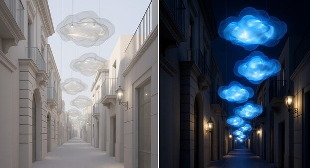 In questo contesto prende forma “Nebula – Le Nuvole di Boscoreale”, un’installazione aerea composta da grandi nuvole sospese che accompagneranno i passanti lungo la storica “via del Popolo”. Leggere e poetiche, evocano i vapori del Vesuvio e i cieli mutevoli dell’area pompeiana, trasformandosi in un segno contemporaneo capace di unire memoria e visione. Un sistema di illuminazione dinamica renderà l’opera viva e cangiante, in dialogo con la vita quotidiana della città.