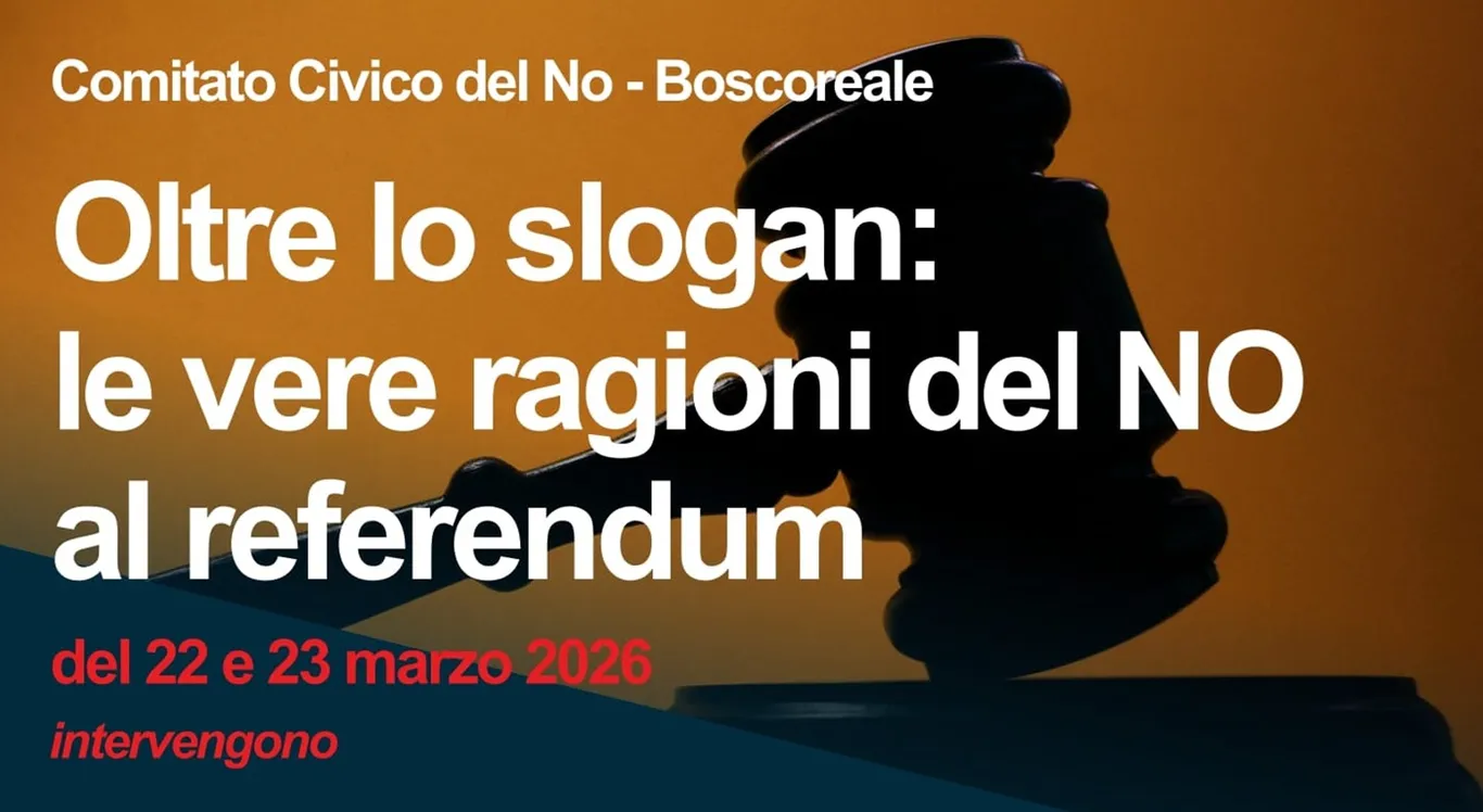 Nasce a Boscoreale il Comitato civico per il No al referendum del 22 e 23 marzo 2026, composto da associazioni e cittadini del territorio vesuviano. Primo evento pubblico voluto dal Comitato è in programma venerdì 13 febbraio alle ore 17.30 presso l’Auditorium Parco Vesuvio, in via Le Corbusier 9 a Boscoreale.