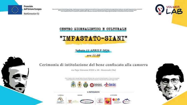 L’evento di intitolazione fa parte della due giorni di promozione della legalità “Sulle orme di Peppino e Giancarlo”, ideata dal giornalista Raffaele Perrotta, che inizia la mattina del 10 aprile e che ha ricevuto il patrocinio morale della Diocesi di Nola, dei Comuni di Boscoreale e Torre Annunziata, della Casa Salesiana torrese e dell’associazione Piccoli Passi Grandi Sogni Aps.