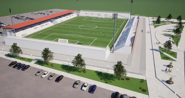 Nello specifico, per ciò che riguarda lo stadio, il progetto prevede la realizzazione dell’impianto pensato per essere il fulcro dell'intera cittadella. Previsto un terreno di gioco in erba sintetica delle dimensioni regolamentari (105 x 68 metri), con una capienza di 7.000 spettatori, tutti con sedute individuali. Per ciò che concerne le luci artificiali, previsto un illuminamento verticale medio di almeno 1.200 lux in direzione delle telecamere fisse e 800 lux nelle altre direzioni. La struttura includerà una tribuna stampa coperta con trenta postazioni, una sala per giornalisti e fotografi, la mixed zone, studi televisivi e una sala conferenze. Prevista anche una tribuna autorità-d'onore con almeno 50 posti e parcheggi riservati.
