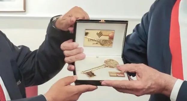 Una chiave in oro 9 carati a rappresentare la bandiera italiana. È il regalo che il Comune di Pompei conferì agli allora ministri Dario Franceschini e Gennaro Sangiuliano. Inoltre un orologio consegnato all’ex direttore degli Scavi di Pompei Massimo Osanna e un rosario d’oro regalato al vescovo di Pompei Caputo.