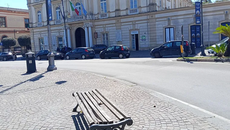 Nella piazza principale di Pompei, dedicata al santo Bartolo Longo, antistante la sede comunale, tutte le vetuste panchine in legno versano in condizioni di grave degrado, costituendo un pericolo per l’incolumità pubblica a causa della presenza di chiodi arrugginiti e schegge appuntite.