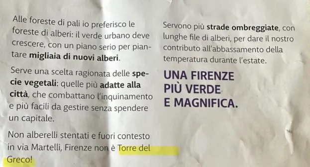 A parlare è il sindaco di Torre del Greco, Luigi Mennella. Il primo cittadino stringe tra le mani un volantino elettorale che sta circolando in queste ore a Firenze per promuovere la campagna elettorale del candidato a sindaco del centrodestra Eike Schmidt e della lista civica che porta il suo nome. Nel volantino, dal titolo “Più alberi, meno pali”, si legge “Firenze non è Torre del Greco”: “Sorprende ancora di più – prosegue Mennella – che questa squallida propaganda venga da chi, come Schmidt, dovrebbe conoscere bene le nostre zone, ricoprendo da inizio anno il ruolo di direttore del Museo e del Real Bosco di Capodimonte di Napoli. Lui, che pure è nato in Germania, all’atto del suo insediamento a Capodimonte ha dichiarato: ‘Arrivando, mi sono girato ad ammirare il golfo di Napoli e mi si è allargato il cuore come sempre quando vengo in questa meravigliosa città’.