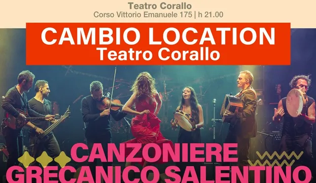 A causa delle avverse condizioni meteo, il concerto del Canzoniere Grecanico Salentino alla XXIX edizione del festival Ethnos previsto per questa sera alle ore 21 è spostato in una nuova location al chiuso.