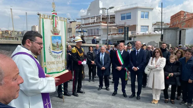 La targa è stata apposta e scoperta oggi - giovedì 10 aprile - dal sindaco Luigi Mennella, in occasione del 34esimo anniversario dalla sciagura, al termine di una mattinata che l’amministrazione comunale ha voluto dedicare al ricordo di chi perse la vita sulla Moby Prince in quella tragica serata del 10 aprile 1991 al largo del porto di Livorno, porto da dove il traghetto era partito in direzione Sardegna, ma dove non fece mai arrivo perché completamente distrutto da un rogo seguito all’impatto con la petroliera Agip Abruzzo. “Appena ci siamo insediati – ha detto il primo cittadino, alla presenza tra gli altri dell’assessore Laura Vitiello – abbiamo accolto l’invito dei parenti delle vittime torresi della Moby Prince, che chiedevano da anni che la città ricordasse i propri cari con un segno tangibile. Abbiamo scelto il belvedere di via Calastro, a ridosso del porto, sia perché è un luogo di passaggio importante sia perché si trova a ridosso del mare, quel mare che ha dato tanto alla nostra città ma ha anche tolto, come le vite di questi cinque nostri giovani concittadini, tutti periti nel compimento del loro lavoro”.