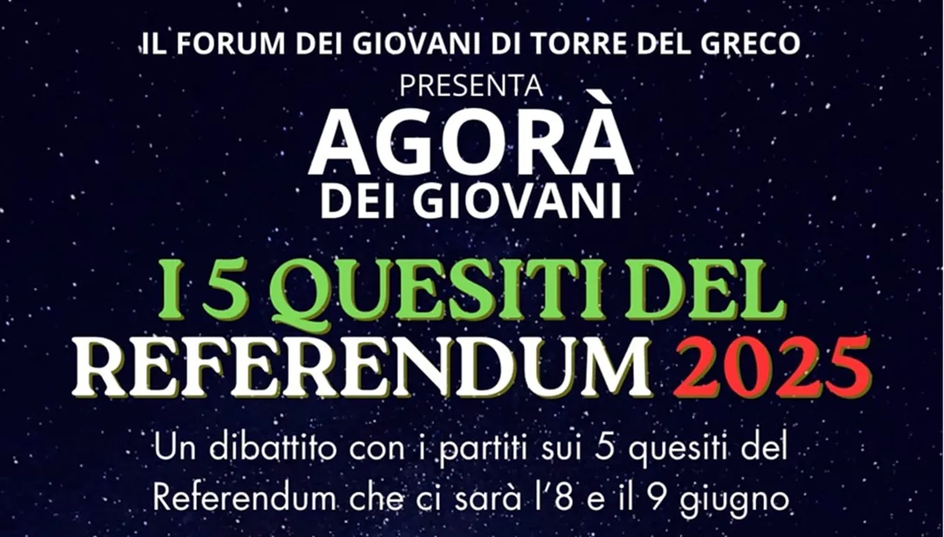 Sabato 17 maggio alle ore 16:30, nella suggestiva cornice del Palazzo Baronale di Torre del Greco, torna l’Agorà dei Giovani, appuntamento ormai consolidato e promosso dal Forum dei Giovani di Torre del Greco, concepito come spazio di dialogo critico e confronto tra le nuove generazioni e non solo.