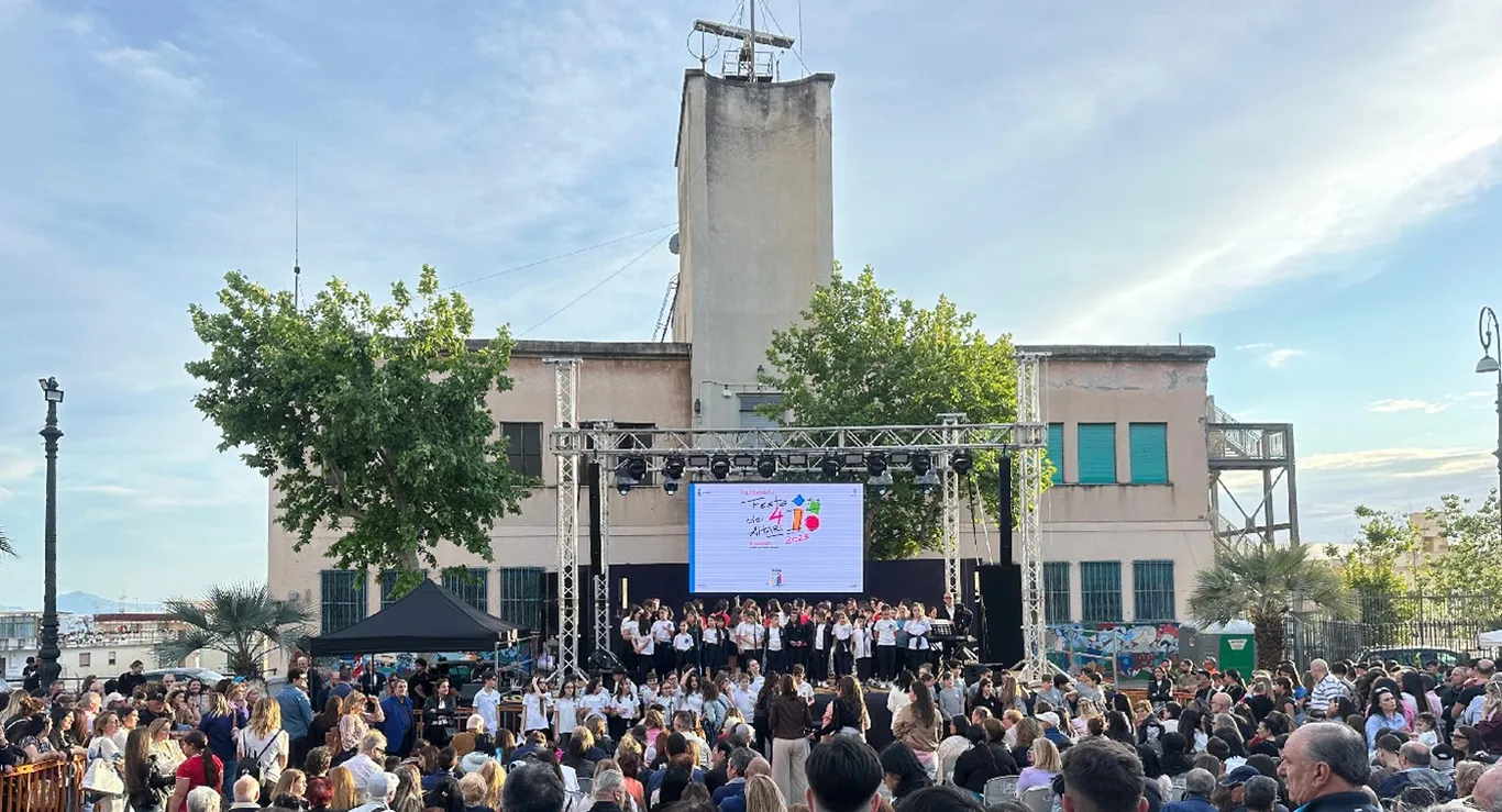 Sul palco della villa comunale, presentati da Peppe Iannicelli, si sono poi esibiti nell’ordine i ragazzi delle seguenti scuole: Giampietro-Romano (che ha presentato “Umanità, mani tese verso il mondo”), liceo artistico Degni (Creatività e inclusione: un mondo così lontano eppur così vicino), Mazza-Colamarino (Il mare tra tempeste e speranze), Sauro-Morelli (esibizione del gruppo degli sbandieratori), Angioletti (Il futuro ha un cuore di speranza), Don Bosco-D’Assisi (Raimir e la festa dei quattro altari), Scauda-Falcone (Verbum panis: spoeranza per tutti), De Nicola-Sasso (Sotto il cielo blu di Napoli), Don Milani (Siamo noi la gioia e la speranza-Il tappeto in segatura), Colombo (Fatte ‘na croce… e spera), Nobel (Gli artisti che hanno reso grande la festa dei quattro altari), De Bottis (Pe’ mmare e pe’ ccielo nun ce stanno taverne, Aspettando speranza, Dibi Radio), Pantaleo (L’arte culinaria del proprio territorio-Il dolce della festa dei quattro altari).