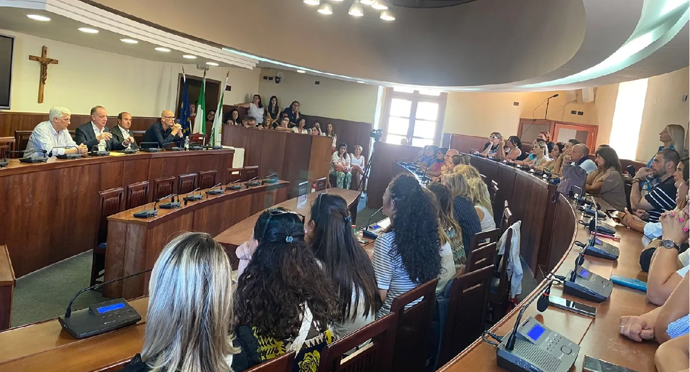 La novità è emersa nel corso di una partecipata riunione svoltasi oggi, mercoledì 6 agosto, nell’aula consiliare di palazzo Baronale. All’incontro hanno preso parte, oltre al sindaco, la dirigente scolastica Rosaria Colantuono, il vicesindaco e assessore all’edilizia scolastica Michele Polese, la vicepresidente del Consiglio regionale Loredana Raia, il presidente del Consiglio comunale Gaetano Frulio, e i dirigenti comunali Antonio Sarnello e Gaetano Camarda, insieme a docenti, personale scolastico e numerosi genitori.