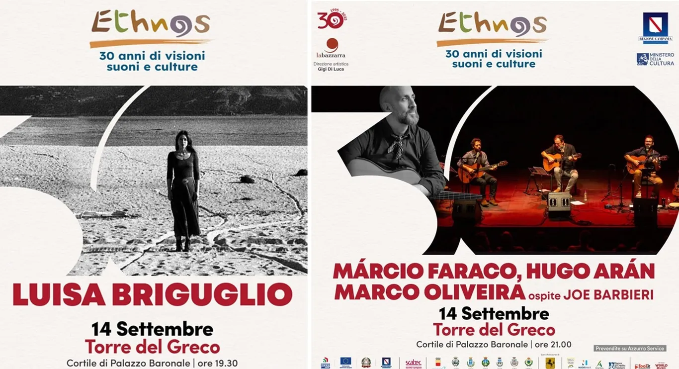 “È con piacere che accogliamo il festival Ethnos in occasione del suo trentennale – dichiara Luigi Mennella, sindaco di Torre del Greco - per celebrare l'importante ricorrenza, abbiamo scelto di aprire le porte della casa comunale, garantendo così uno scenario estremamente affascinante e suggestivo per ospitare i due appuntamenti pensati dal direttore artistico Gigi Di Luca appositamente per la nostra e sua città. Siamo certi che il pubblico potrà godere di spettacoli di qualità e in grado di valorizzare le nostre bellezze, nell'ottica del programma di promozione turistica che sta caratterizzando il lavoro dell'amministrazione comunale”.