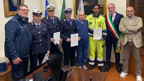 Il riconoscimento è stato conferito agli agenti Anna Palomba, Mario Magliulo e Raffaele Magliulo, oltre al volontario Domenico Ubaldo, protagonisti di un intervento provvidenziale avvenuto il 30 dicembre 2025 nell’area mercatale di via Falanga.