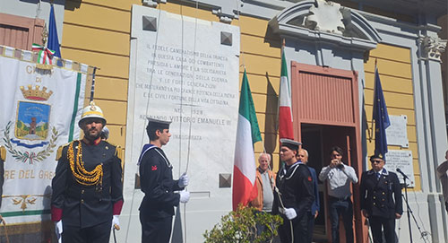 Il sindaco è intervenuto dopo la cerimonia dell’alzabandiera e l’esecuzione dell’inno nazionale, preceduto anche dalla lettura del messaggio del Presidente della Repubblica, Sergio Mattarella, lettura affidata al comandante della Capitaneria di porto, Angelo Labella. Hanno portato i loro saluti anche la presidente della commissione Sanità del consiglio regionale, Loredana Raia, e il presidente delle associazioni mutilati e invalidi di guerra e combattenti e reduci, Antonio Cetronio.