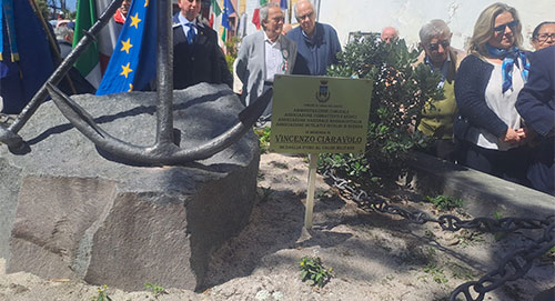 La consueta deposizione di una corona d’allora ai piedi del monumento ai caduti posto in villa comunale, è stata quest’anno preceduta dallo scoprimento della targa in onore di Vincenzo Ciaravolo, medaglia d’oro al valor militare alla memoria, a cui è intitolato il polmone verde di corso Vittorio Emanuele. La targa è stata posta nello spazio verde a ridosso della casa del combattente, dove precedentemente era già stata sistemata una grossa ancora.