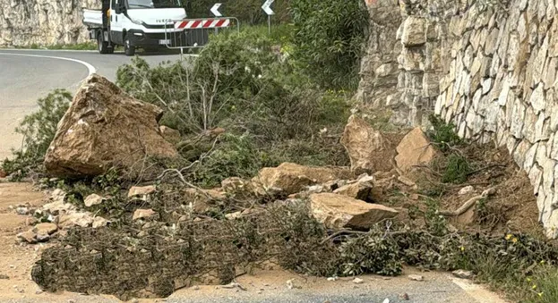 Per fortuna l’intervento dei carabinieri è stato determinante. Aver bloccato parte della strada è stata la decisione giusta. Poco fa è venuta giù una bella porzione di costone (vedi foto).