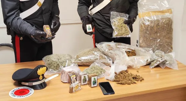 Nella sua abitazione, luogo dove è stata estesa la perquisizione, ancora altri 3 chili di “erba” e 14 panetti di hashish da 100 grammi ciascuno.