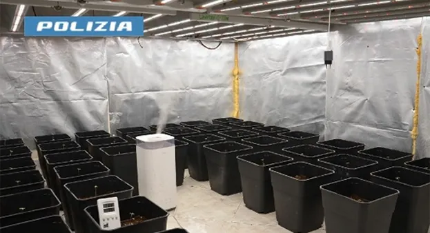 Qui, nella stanza di un appartamento, hanno scoperto 53 piantine di marijuana coltivate in una serra completa di lampade riflettenti e di un sistema di aspirazione per accelerare la crescita.