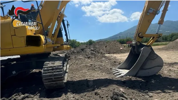 Dal sottosuolo affiora un ingente quantità di rifiuti. La movimentazione del terreno viene interrotta e sul posto arrivano anche i carabinieri forestali di Ottaviano.