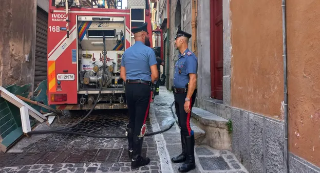 Ferito l’inquilino 54enne romeno, gravemente ustionato e trasportato in codice rosso al centro grandi ustionati di Napoli.