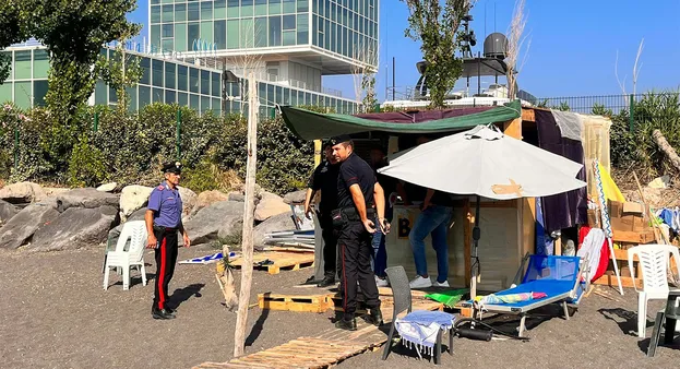 Dovrà rispondere di occupazione abusiva di spazio demaniale. Il materiale sequestrato è stato affidato alla Polizia municipale.