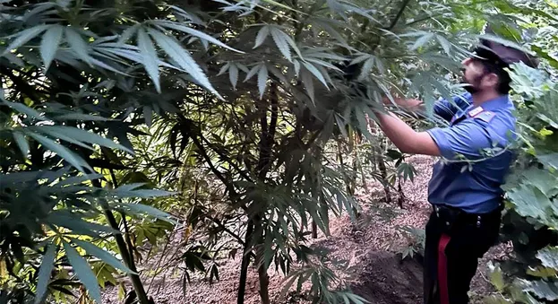 La marijuana è stata estirpata e distrutta mentre sono stati sequestrati il materiale per la lavorazione e la cura delle piante illegali.